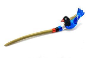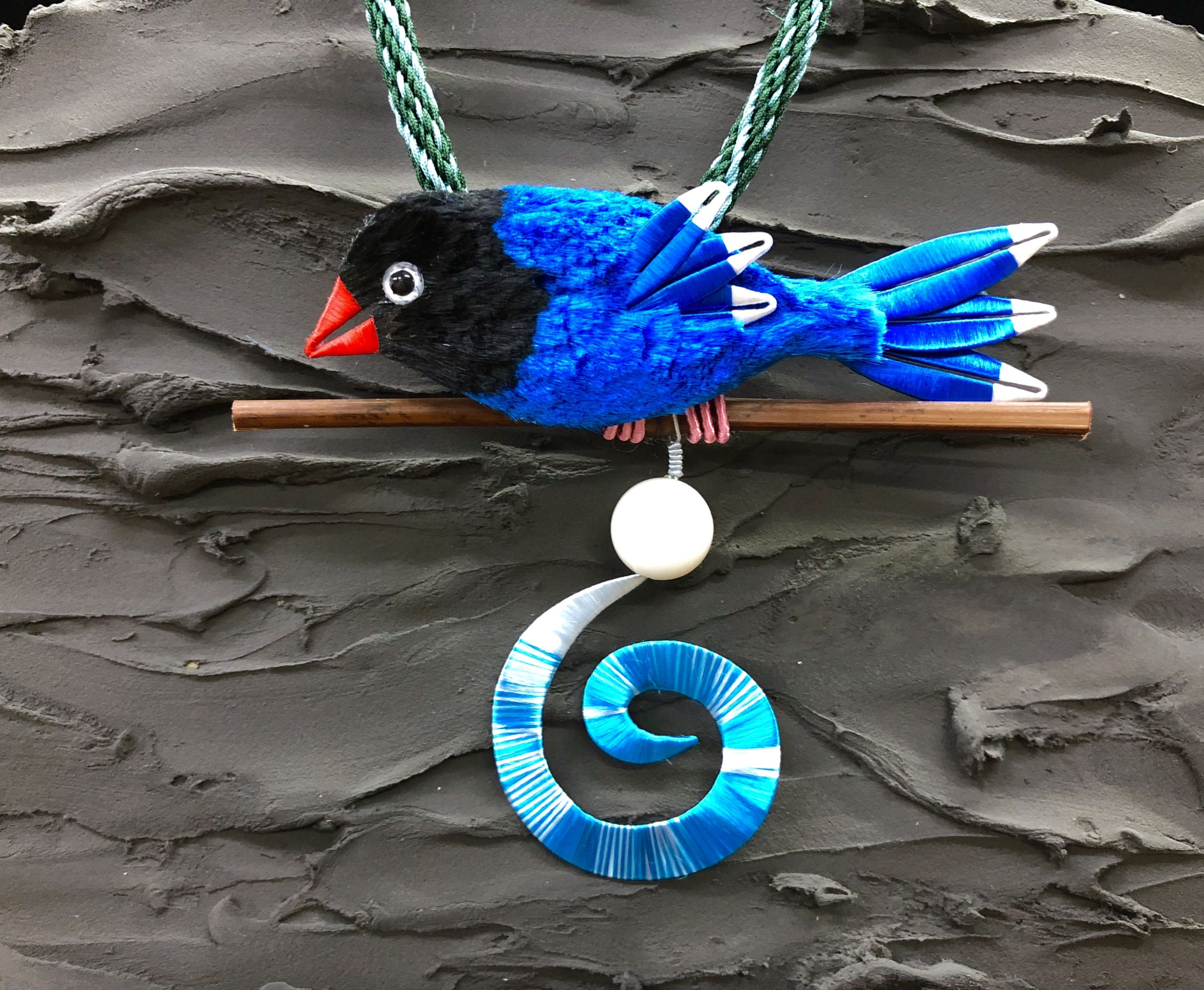 瑩的幸福工坊 商品名稱:藍鵲系列 設計者:林佩瑩、李庚錞(耳環胸針) 電話:0920-809-636 臉書:瑩的幸福工坊 台灣傳統纏花工藝,是早期婚嫁的「春仔花」飾品技術, 林佩瑩老師除了傳承之外更透過商品設計, 讓春仔花融入現代生活。 此系列以雲林縣特有種八色鳥、台灣特有種藍鵲, 及常見的麻雀、綠繡眼、白鶺鴒等, 在分析台灣鳥類的外型與顏色後, 運用纏花與剪絨工藝創新結合, 可作為胸針、髮簪、項鍊、耳環的裝飾, 豐富你/妳的現代生活品味。